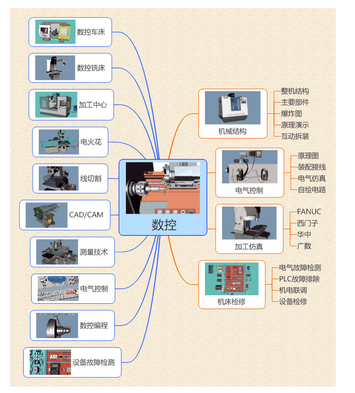依托數(shù)控 骨干教師、教學(xué) 、行業(yè)專家,在學(xué)校、企業(yè)、軟件開發(fā)/出版公司多方合作,根據(jù)零件加工流程對(duì)數(shù)控車、銑/加工中心進(jìn)行教學(xué)項(xiàng)目的歸納和整理,在每個(gè)教學(xué)目錄中涵蓋課程涉及到的理論知識(shí)和技能訓(xùn)練,以提 教學(xué)質(zhì)量和效率為目標(biāo),通過三維動(dòng)畫的方式,讓 知識(shí)加通俗易懂。產(chǎn)品涵蓋了CAD/CAM、測(cè)量技術(shù)、設(shè)備故障檢測(cè)、數(shù)控編程、電氣控制、數(shù)控車床、數(shù)控銑床、加工中心所需教學(xué)實(shí)訓(xùn)仿真資源。
