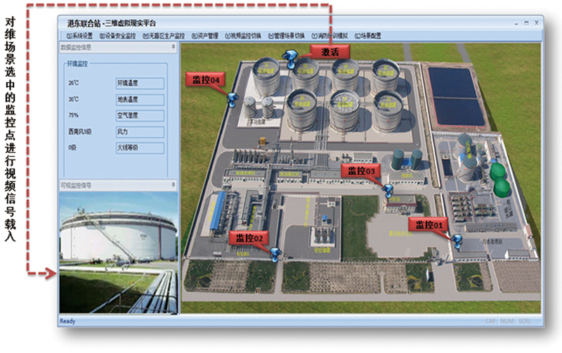 通過與視頻監(jiān)控系統(tǒng)的融合,實(shí)現(xiàn)在三維場(chǎng)景中的視頻監(jiān)控分布狀況的查看,并實(shí)現(xiàn)所見即所得的視頻信號(hào)調(diào)用和查看。