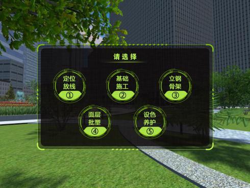 園林綠化工程施工虛擬仿真系統(tǒng)VR實(shí)訓(xùn)實(shí)習(xí)軟件該系統(tǒng)包含塊料路面、卵石路面、駁岸工程、灌木移植、木花架施工、景墻施工、塑山工程、現(xiàn)代亭施工,共記八個(gè)模塊。每個(gè)模塊都結(jié)合全息視頻、施工工藝、施工圖紙等多種表現(xiàn)形式,解決配套施工教學(xué)資源、實(shí)訓(xùn)操作場(chǎng)地、實(shí)訓(xùn)操作成本等問(wèn)題,同步加強(qiáng)了教師在教學(xué)過(guò)程中的考核,強(qiáng)化教學(xué)手段。
